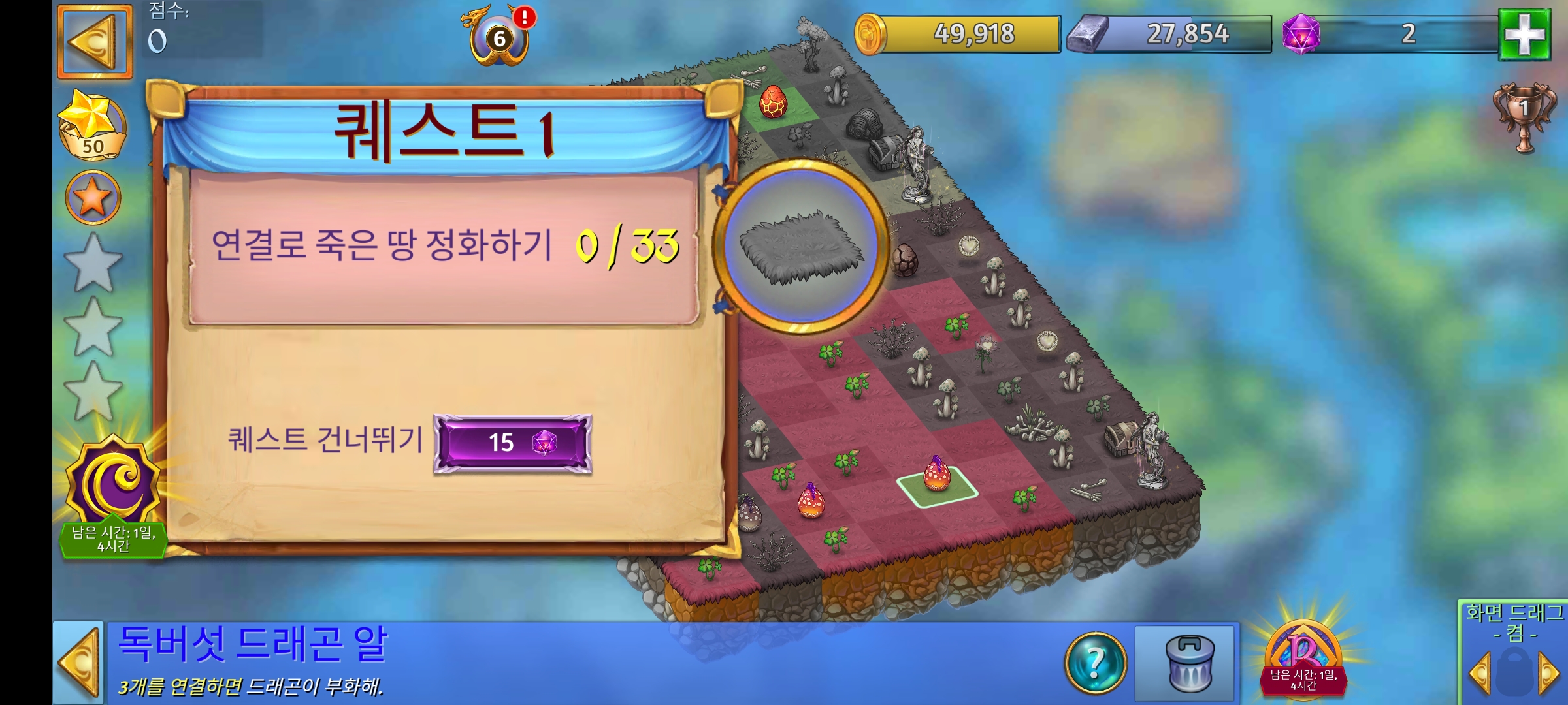 - 퀘스트 1 연결로 죽은 땅 정화하기 x 33