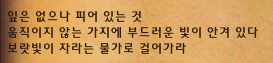 ![]() 잎은 없으나 피어 있는 것 움직이지 않는 가지에 부드러운 빛이 안겨 있다. |